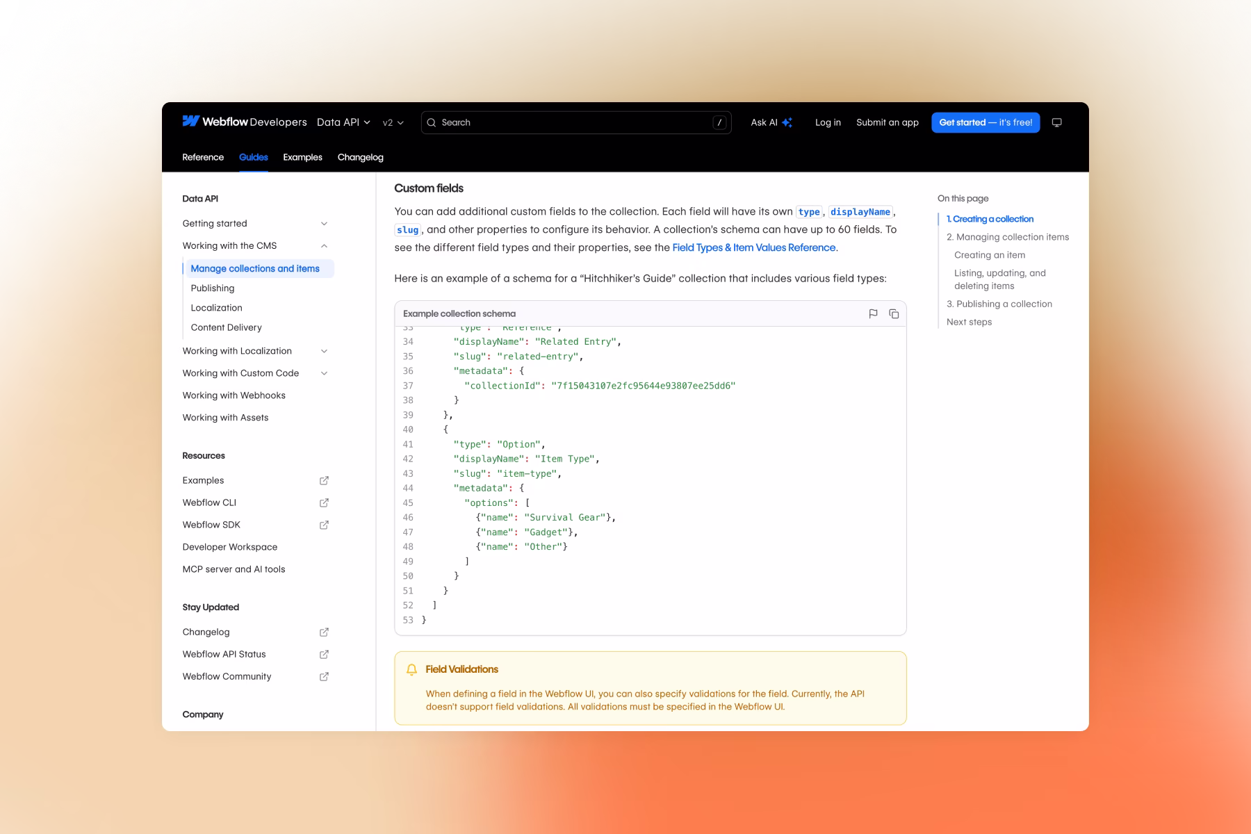 Hinweis: APIs können sich immer wieder verändern. Schau bei der offiziellen Webflow API Dokumentation vorbei, um auf dem neusten Stand zu sein.